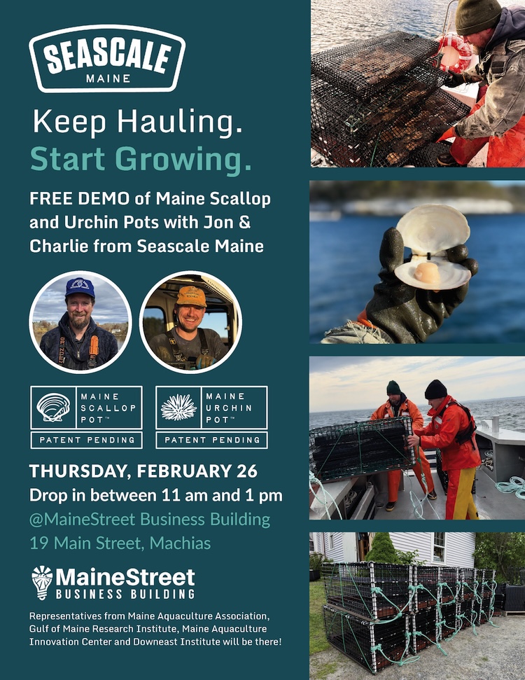 Join Jon and Charlie from Seascale Maine as they demonstrate how their Maine Scallop Pot and Maine Urchin pot work. Seascale Maine’s mission is to provide high-quality, easy-to-integrate aquaculture gear that helps lobstermen add new revenue streams without changing the way they fish.