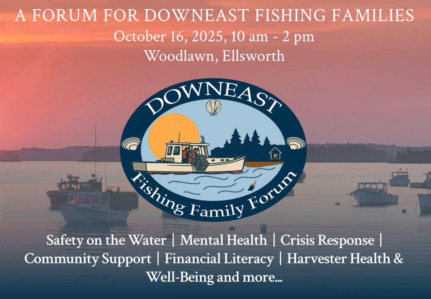 That’s why we are hosting the First Annual Fishing Family Forum — a gathering for fishing families along Maine’s Downeast coast to connect, share, and talk about what matters most, including: Safety on the water, harvester health & well-being, mental health supports, community response in emergencies, financial literacy & family stability.