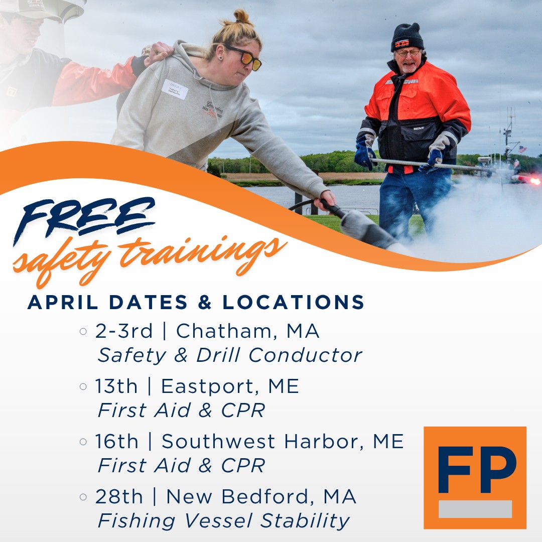 4/13, 8 am-4 pm - Eastport Port Authority, Eastport - Register When you’re at sea, you don’t have the convenience of emergency personnel arriving in a few minutes to care for an injured crewman. As fishermen, you are the first responders. Depending on the weather and your distance from shore, you may continue to respond for […]