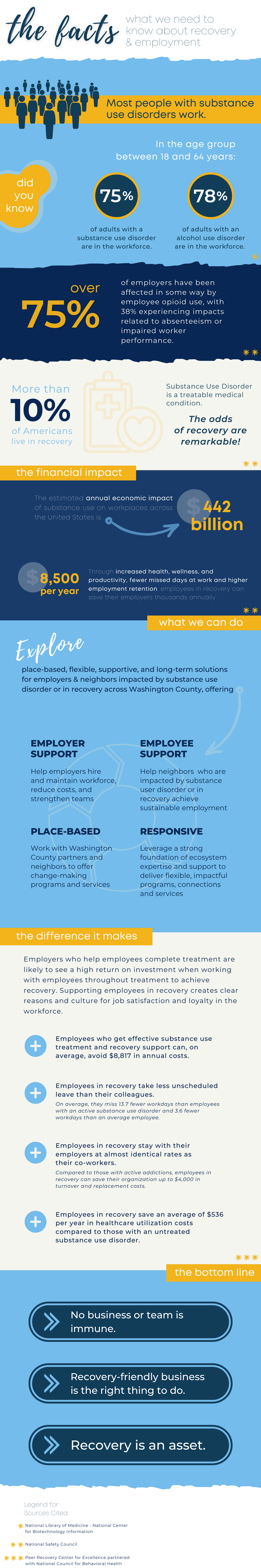 A county-wide Recovery Friendly Workplace Network will help people in recovery find essential employment opportunities that support their economic well-being and recovery journeys. At the same time, such a network will help employers hire and maintain workers, reduce costs, and continue to build thriving businesses and organizations. Altogether, we believe a Recovery Friendly Workplace Network will also reduce stigma related to substance and alcohol use disorders and address larger challenges of workforce participation and persistent poverty in Washington County. Working together with commitment from businesses, both large and small, this Network will also save lives.